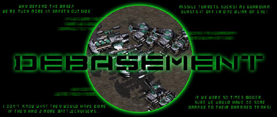 Très vite, HED s’étendit à 4’ (en dropship) avec 4 SCVs et amèna 4 tanks 0/1 pour l’attaque. Suivirent 2 battlecruisers (HED croyait réellement devoir faire le combat de sa vie) et un petit paquet de goliaths et firebats. Mais à peine les Terrans installés dans leur deuxième base, l’alarme retentit dans leur main: 8 guardians venaient d’assombir le ciel Terran et l’unique goliath coincé sur la falaise ne pouvait pas y faire grand-chose. HED déclencha illico son tank push. Son but: frapper par l’ouest de l’expo Zerg. Tout en avançant le push, HED se mit à construire des tonnes de tours missile pour éviter toute contre-attaque aérienne ou souterraine. Lorsqu’Ultiman se rendit compte de la situation, il réalisa que sa base avancée était perdue, et décida de terminer coûte que coûte toutes les positions Terranes. De même, HED voyait ses bases balayées une à une, mais s’obstina dans son push.