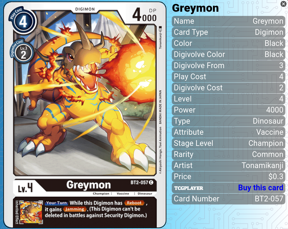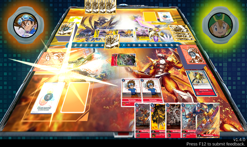 Dans le Digimon Card Game, chaque joueur dispose d’un deck de 50 cartes. L’Ă©crasante majoritĂ© de ces cartes sont des Digimon de niveau diffĂ©rents. Il y a les oeufs (qu’on ne peut faire Ă©clore que dans une zone “couveuse” spĂ©ciale), et 5 niveaux d’Ă©volution au-dessus. Contrairement Ă PokĂ©mon, les Digimon dĂ©passent rapidement le stade “animal” pour vite devenir des monstres robotisĂ©s badass (dragon mecha, chevaliers cyber, dinosaures avec des lance-misisles, choisissez votre camp). Mais pour cela il faut des ressources, et la ressource de Digimon est assez spĂ©ciale: c’est de la mĂ©moire.