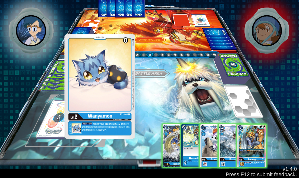 Digimon Card Game Fan Made (DCGFM) a Ă©tĂ© crĂ©e par AbitNerd sur Unity. C’est un des nombreux moyens (non-officiels) de jouer en ligne au nouveau jeu de cartes. Et Ă mon avis, il s’agit du meilleur moyen de dĂ©couvrir le jeu: un tuto est disponible ainsi qu’un mode online. Un deck builder et les decks de base sont Ă©galement prĂ©sents!