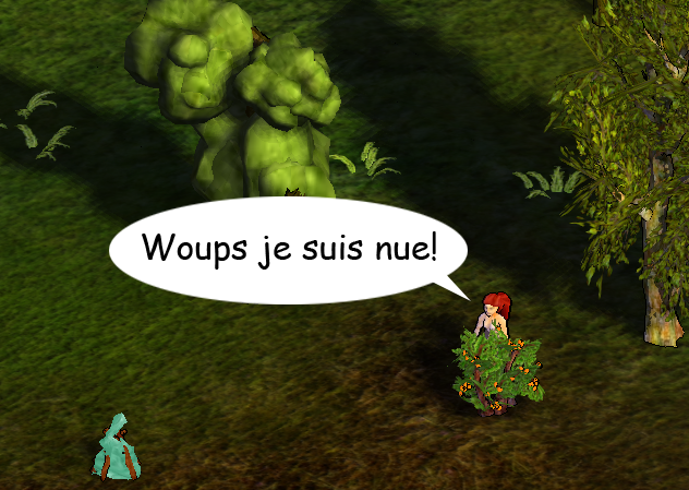 Je croise un joueur. Il ne me voit pas car il n’a pas dézoomé la carte. Je lui hurle “HI” en majuscules et il s’enfuit. Tout le monde est à poil, on mange des baies et on prend des branches sur les arbres, c’est le jardin d’Eden buggé!