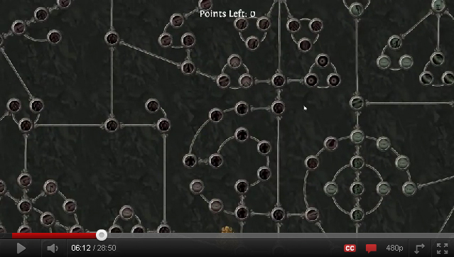 Il y a un arbre gigantesque de skills passifs. Le screenshot ci-dessus, pris dans une vidéo de beta testeur, ne montre que 1/5e de l’arbre total… Les skills passifs se divisent aussi en 3 couleurs. (non il n’existe pas que 3 skills passifs maximum lol)