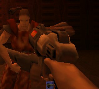 Graphiquement, c’est rĂ©ussi… surtout en Open GL. Les effets de lumière sont jolis et le jeu dĂ©gĂ©nère vite en feu d’artifice avec un BFG (l’arme la plus puissante du jeu) en main. CĂ´tĂ© son, c’est pareil: hurlements d’agonie, bruits de pas, eau qui suinte sur les murs des Ă©gouts etc. La maniabilitĂ© est excellente: on peut activer le mouselook (diriger la tĂŞte avec la souris), strafer, s’accroupir, nager, avec un nombre de touches minimes (la config clavier est d’ailleurs celle de Doom, Quake, Hexen et consorts). La cĂ©lèbre console (qui avait fait ses preuves dans Quake) est toujours aussi pratique (exĂ©cutions de scripts, enregistrement de dĂ©mos, cheats, commandes serveur, et d’innombrables autres choses)