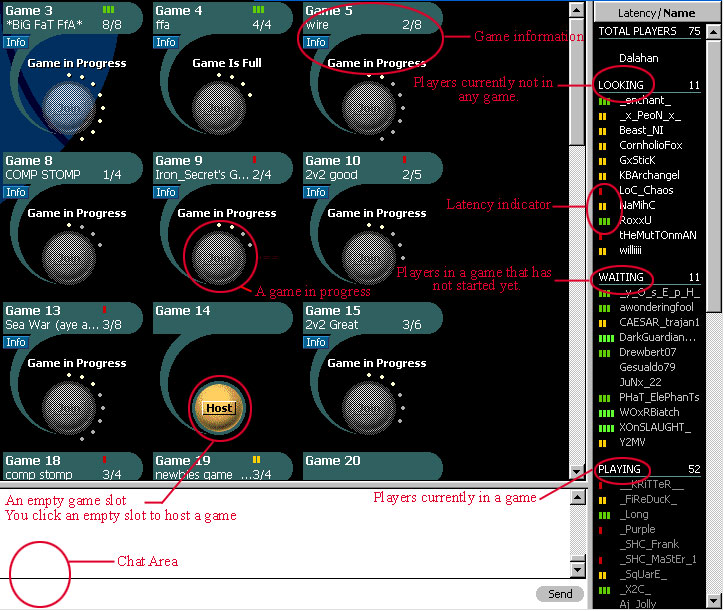 L’aide (bien qu’en anglais) est super complète et me guide pas Ă pas. Cette dernière me fait tĂ©lĂ©charger 2 plugins: un pour Netscape, l’autre pour le jeu. Après 5 minutes de tĂ©lĂ©chargement et d’installation, on m’annonce que je peux maintenant jouer! Très contente, je reviens Ă la page des rooms. Je clique sur un (une?) room dont les joueurs sont au niveau Rookie (le plus faible). Le site me connecte Ă un serveur de chat oĂą on peut voir les parties et leur Ă©tat (nombre de joueurs, host, lag etc.). Une autre frame me montre les joueurs et leur lag. Apparemment, j’ai une des meilleures conditions de connexion du lot. Le pire arrive ensuite: un message vient s’afficher… Je n’ai pas la bonne version du jeu!