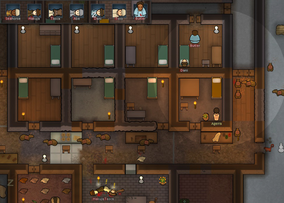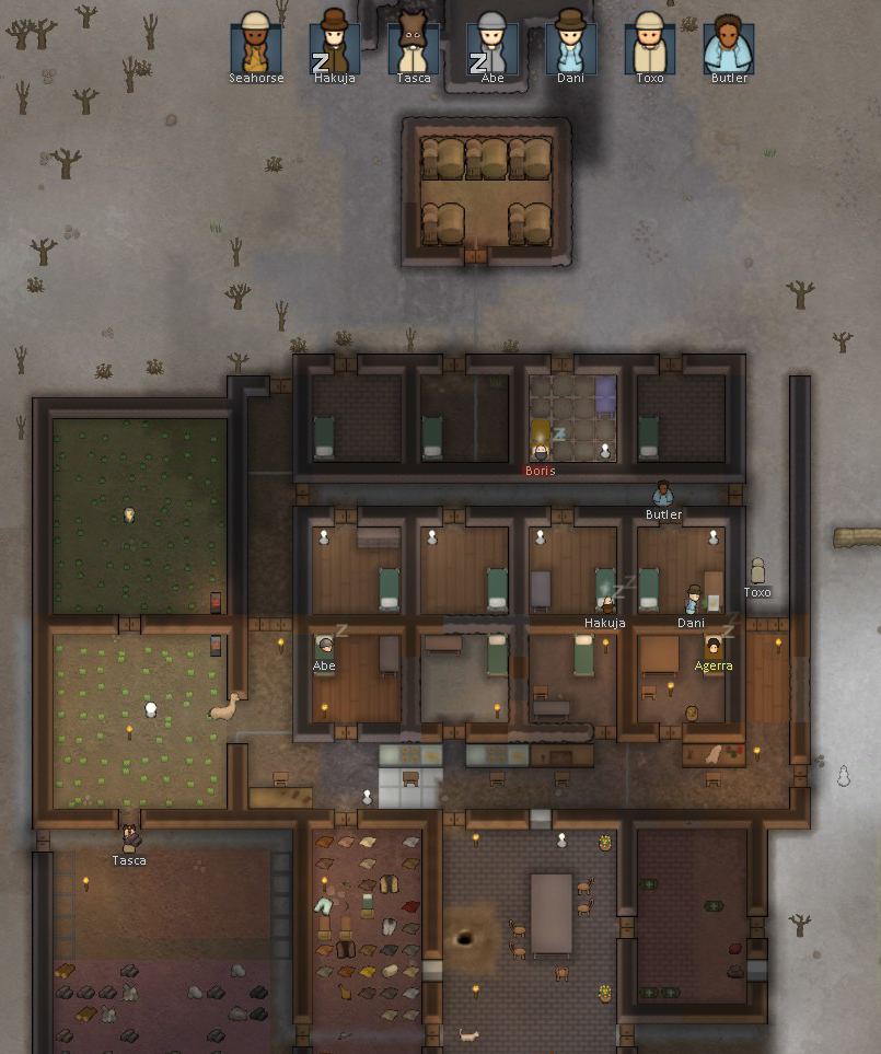 Heureusement, Toxo aime tellement construire qu’il peut se coucher a 5h du mat apres avoir monté des murs ou se lever à 1h du mat pour avancer le toit. C’est un bon travailleur, qui apprend vite… même s’il n’est pas apprécié de grand-monde. Par exemple, à 5h du matin il est venu dans la chambre d’Hakuja pour lui construire une torche.